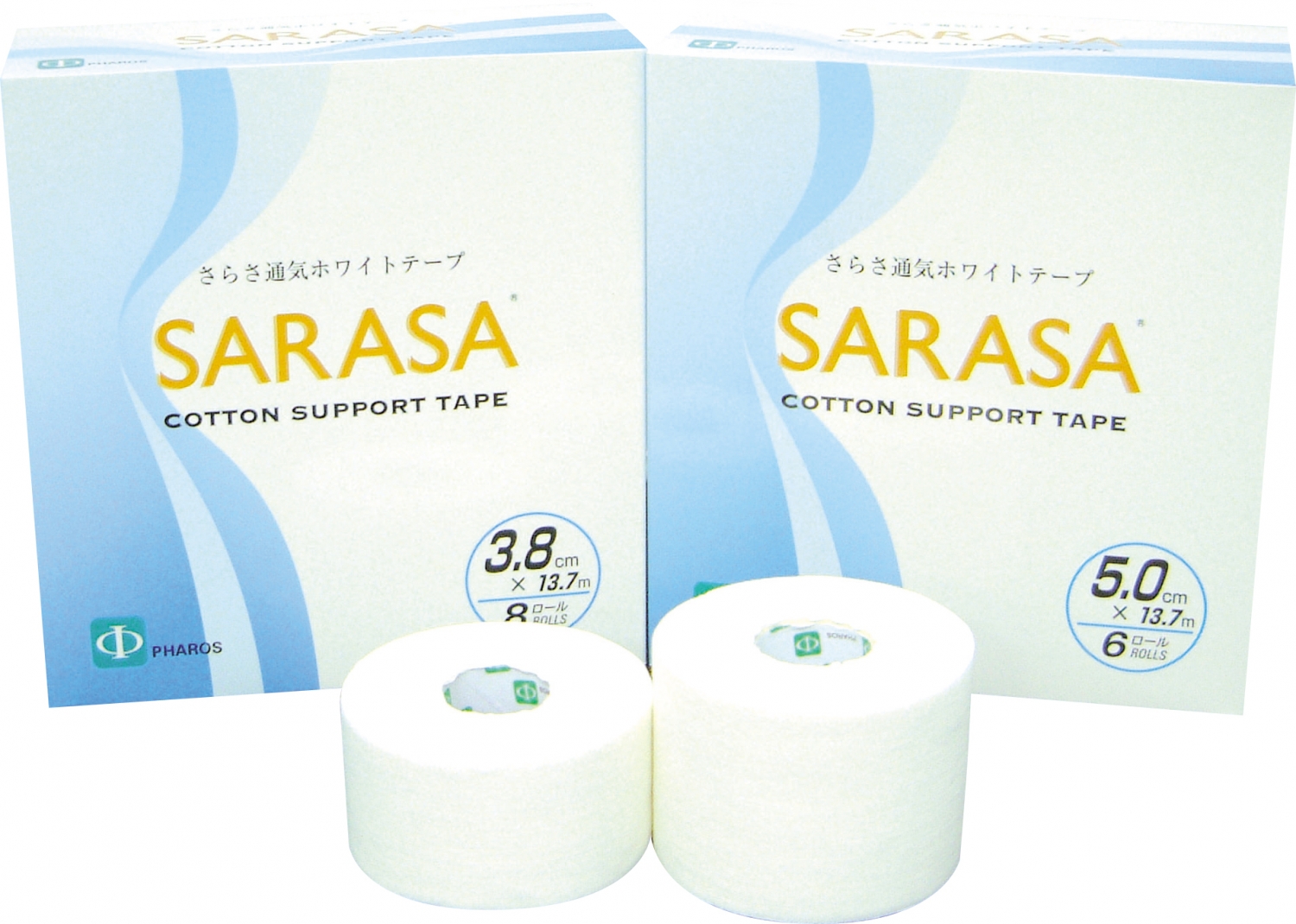 Sarasa Cotton Support Tape is a supportive tape treatment that stabilizes joints during vigorous physical activity in all conditions.